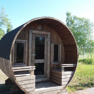 Tynnyrisauna Uuno on pyöreä pystymallinen valmiiksi koottu sauna 6-8 henkilölle, päälikatto on elementteinä. Tynnyrisaunan tervaleppälauteet on kahdessa tasossa valmiiksi asennettu.